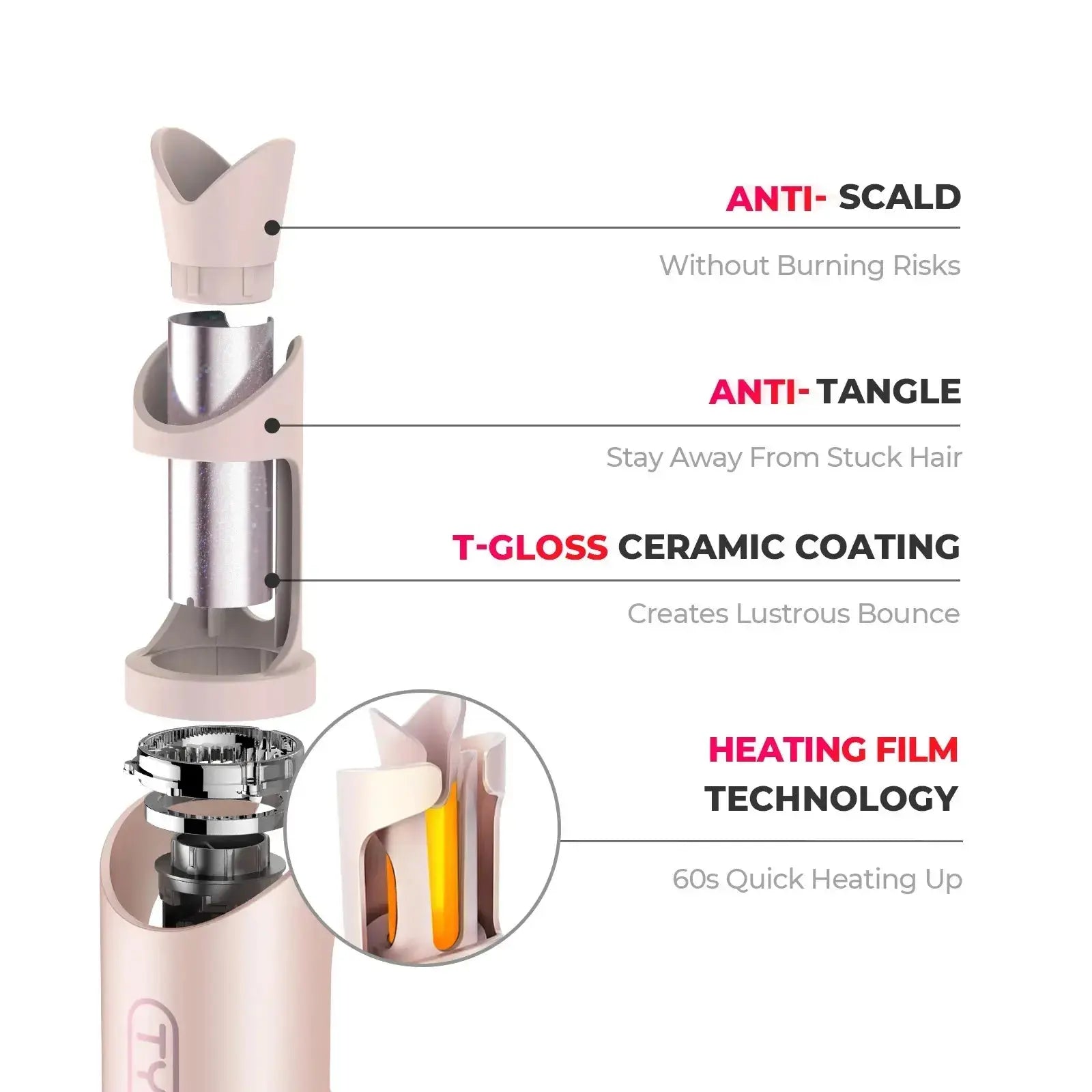 • Intelligent Anti-tangling Design, 360° Heat Shield Anti-scald Design