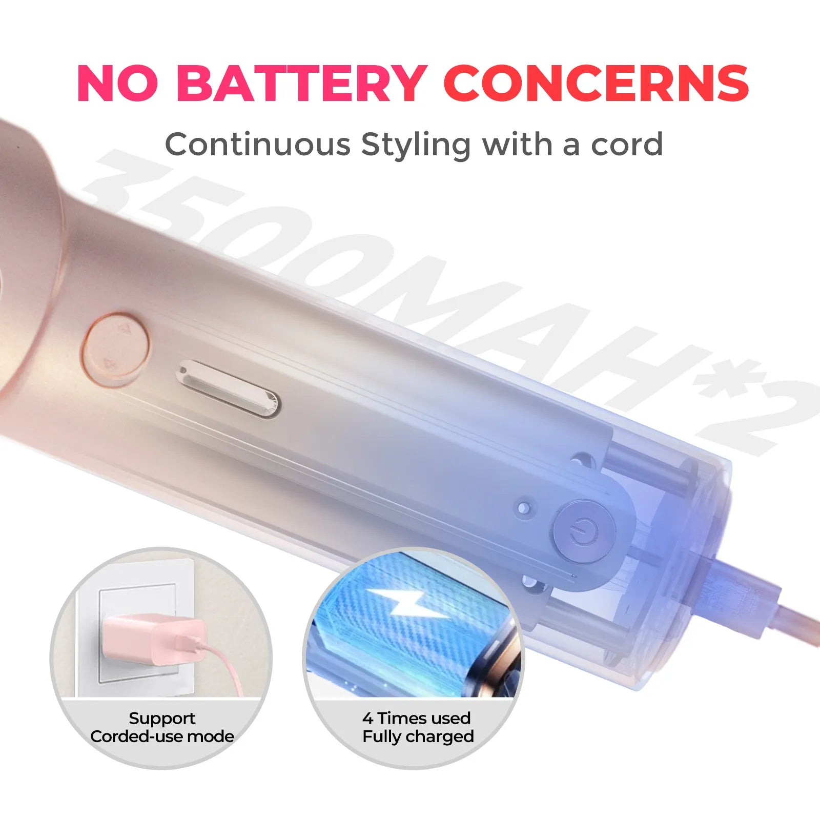 Transform your styling routine with FLOAMMI CURLGO PINK EDITION 1 Inch Cordless, and corded Automatic Curling Iron. With a cordless design and dual voltage compatibility, it's the perfect travel essential. Powered by a massive 7000 mAh battery, offers up to 60 minutes of cord-free styling.  T-GLOSS ceramic coating and 200 million negative ions create long-lasting, salon-quality results. Effortlessly create stunning curls anytime, anywhere with the perfect blend of style, innovation, and convenience.
